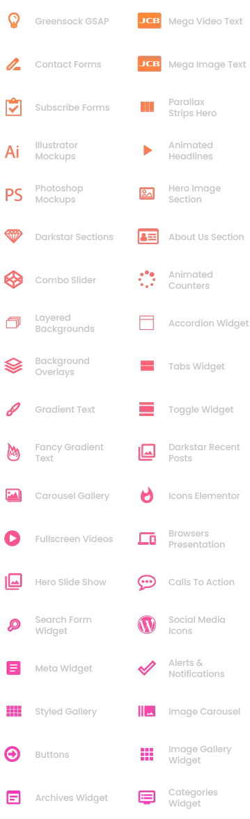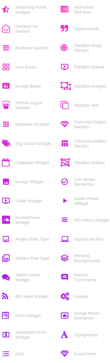 A vast selection of Demos, Page Designs, Elements, Custom Post Types and much, much more!